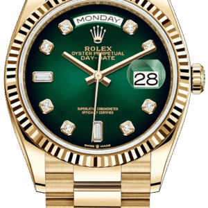 Rolex Day-Date 36 Watch Fluted Bezel Green Ombre´ Diamond Dial President Bracelet (Ref# 128238)