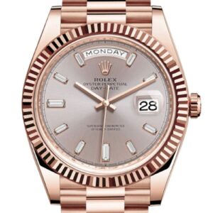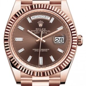 Rolex Day-Date 40 Rose Gold Day-Date 40 Watch - Fluted Bezel - Chocolate Baguette Diamond Dial - 228235