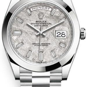 Rolex Day-Date 40 Platinum Day-Date Smooth Bezel Meteorite Baguette Diamond Dial President Bracelet 228206