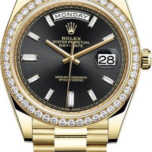 Rolex Day-Date 40 Yellow Gold - Black Diamond Dial - Diamond Bezel - President Bracelet (Ref# 228348RBR)