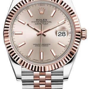 Rolex Datejust 41 Steel and Everose Rolesor Fluted Bezel Sundust Index Dial Jubilee Bracelet 126331