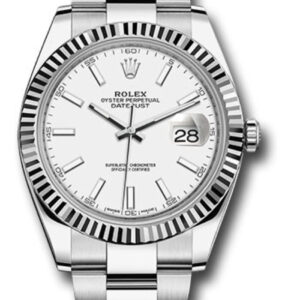 Rolex Datejust 41 Fluted Bezel White Index Dial Oyster Bracelet 126334