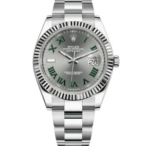 Rolex Datejust 41 Grey Slate Wimbledon Green Roman Dial Oyster Bracelet 126334