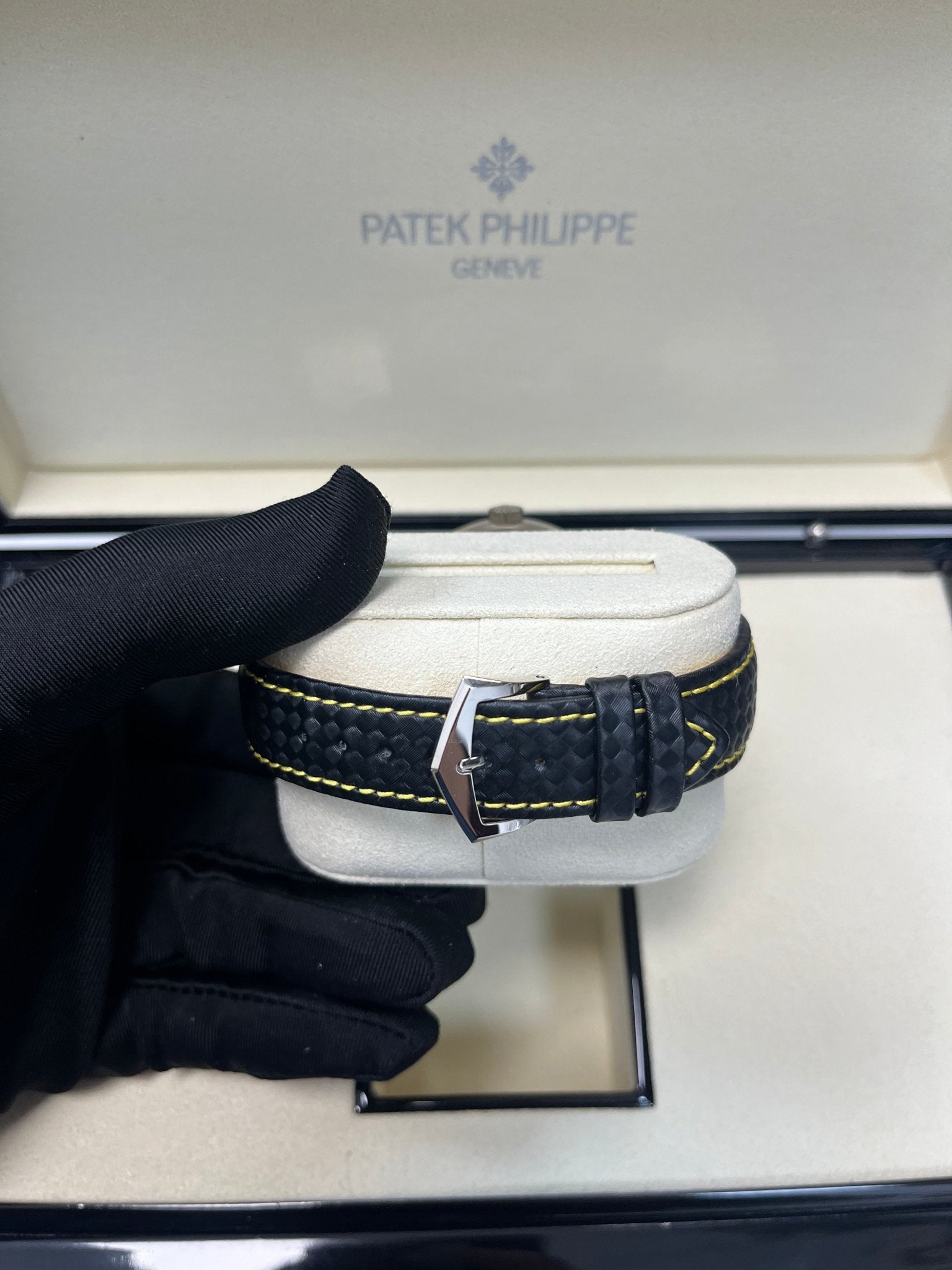 This dynamic design is enhanced by touches of yellow (6007G-001), red (6007G-010) or sky blue (6007G-011) on the counters and seconds hands as well as on the stitching and lining of the black calfskin straps with embossed “carbon” pattern.