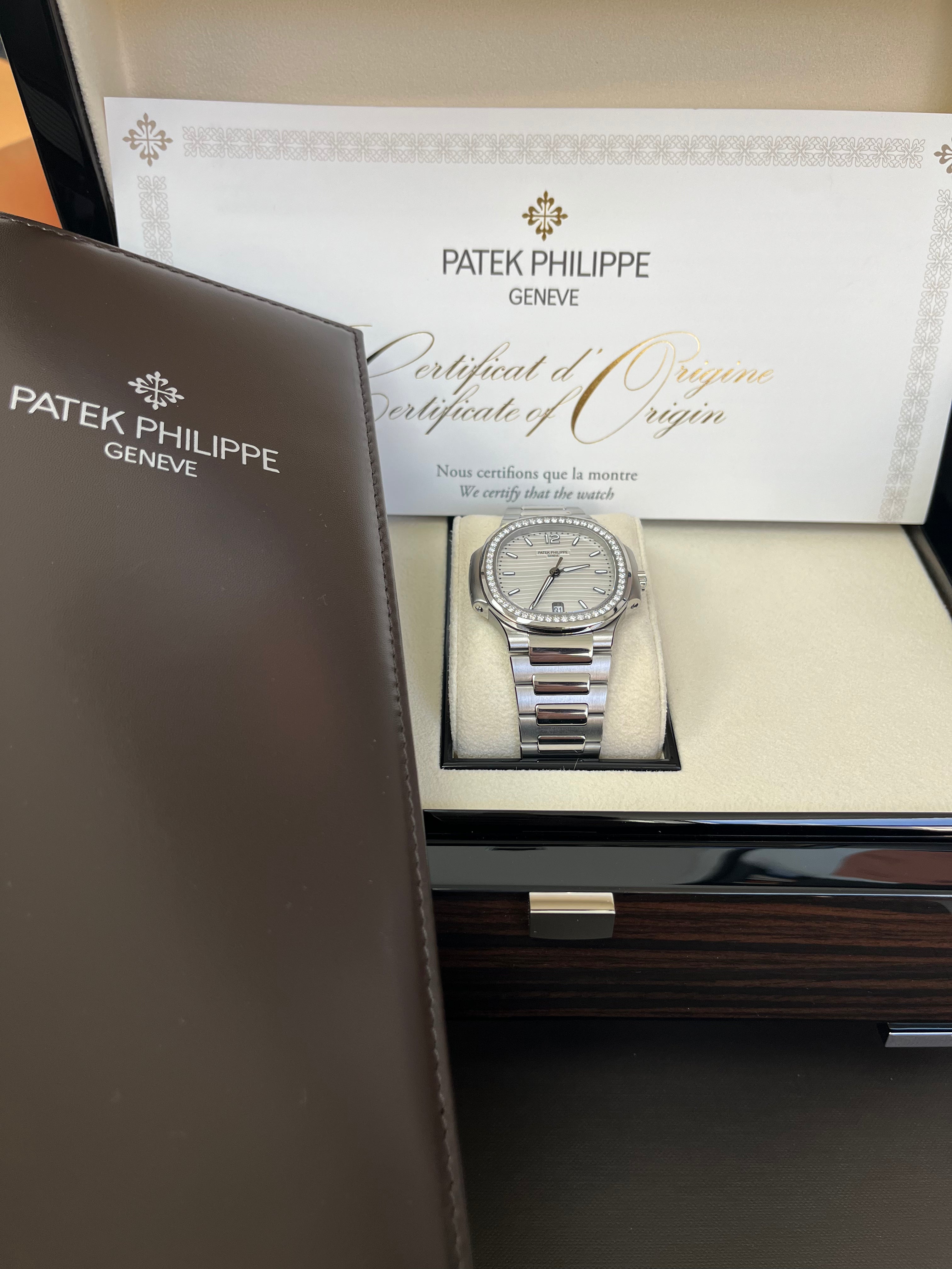 Patek Philippe Nautilus Diamond Bezel Silver Index Dial Reference #7118/1200A-010