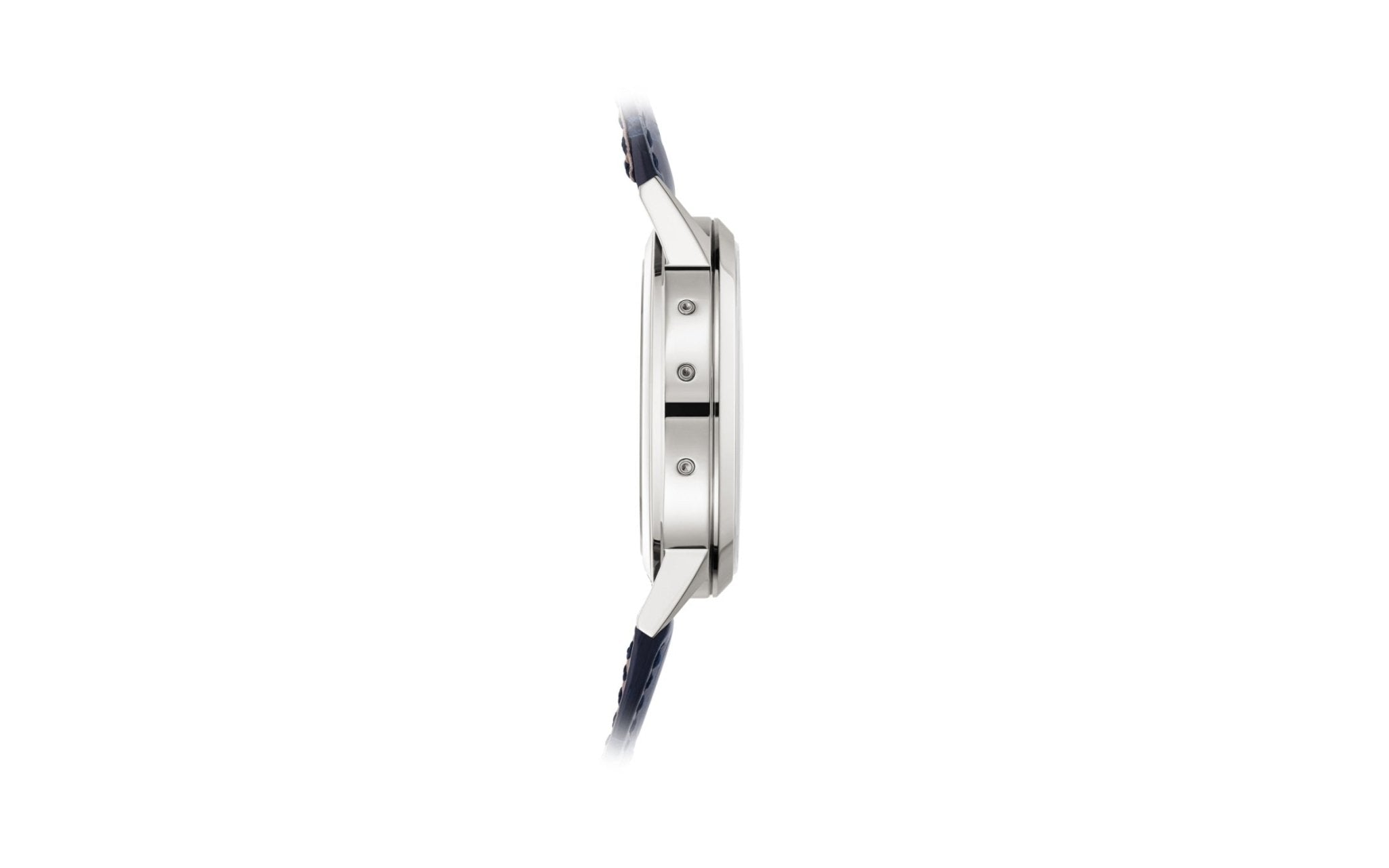 Platinum. Interchangeable solid and sapphire crystal case backs. Water-resistant to 30m. Diameter: 41.3mm. Height: 11.07mm.