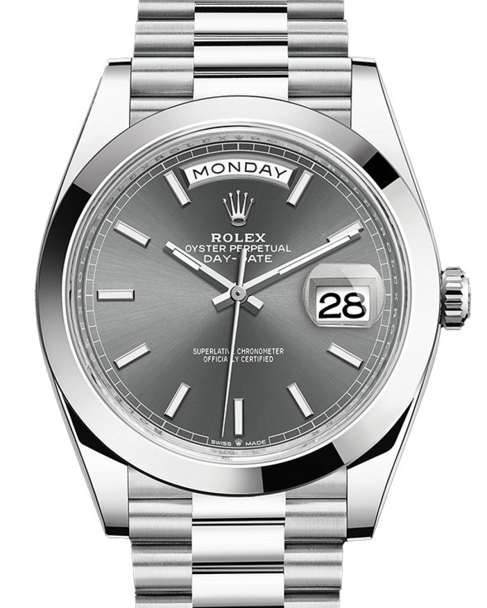 Rolex Day-Date 40mm Platinum/ Grey Dial Smooth Bezel Index Dial (Reference 228206)