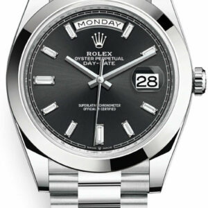 Rolex 950 Platinum Day-Date 40 Watch - Smooth Bezel - Black Index Dial - President Bracelet (Ref # 228206)